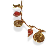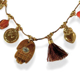 Een beschermende ketting met de hand van voorspoed en gouden symbolen, voor kracht en positieve energie.